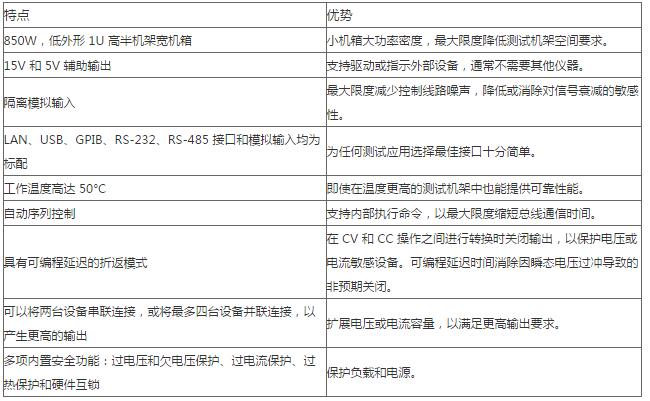 2268系列電源在最小型封裝內提供最高功率密度。2268系列電源采用1U高、半機架寬機箱,在測試機架中占據最小空間。如果需要多部電源,可以將電源垂直落放在測試臺上或者在測試機架上并排放置,在1U高度空間內提供兩個輸出。2268系列電源的通風采取由前至后方式,這樣,不影響氣流上下或左右機架空間的使用。因此,它只需要1U的機架總高。此外,2268系列電源最高工作溫度是50 °C,因此,即使在測試機架溫度升高時也能進行高可靠運行。