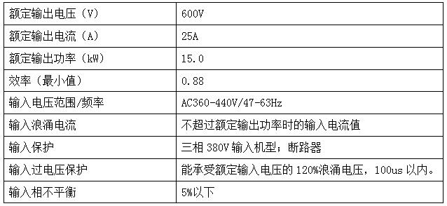 10.大功率電源:輸入電壓3Φ380VAC/50Hz,輸出直流電壓可調(diào),最大不小于600VDC,輸出電流不小于100A。