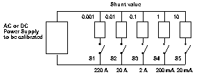 A:由于精密電流分流器能提供比電流源良好的電流穩(wěn)定度及精確度,因此可用來校正直流或交流電流源。下圖顯示出待測電流源與精密電流分流器之間的連接方式,每個電阻器用來分別校驗20mA到220A電流范圍,如此可以得到最佳的精確度。