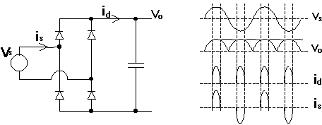 圖1 全橋二極管整流器電路及其電壓電流波形