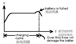 電池充電器在給電池充電的過程中,當電池端電壓開始下降時(-△V,負電壓斜率,即圖中電池充滿A點),電池充電器必須停止給充電電池充電,對電池的超額充電會造成電池永久性的損壞,即過充電會縮短電池的壽命。