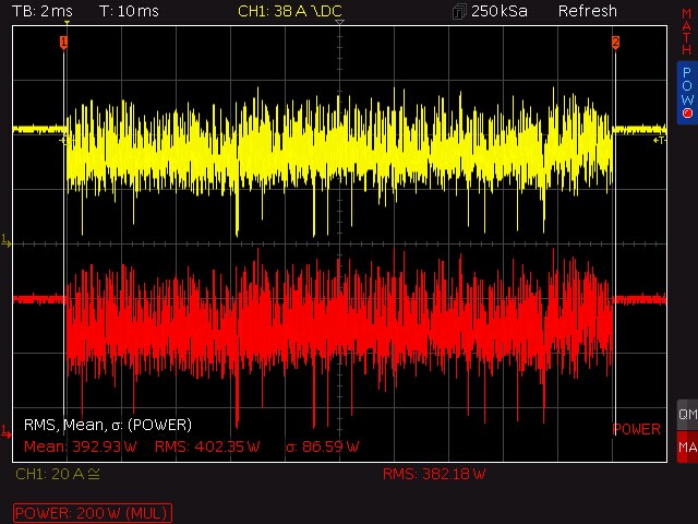 首先我們做一個假設:假設在12V端口在帶載下保持一個恒定電壓值,這樣我們不用擔心測量電壓的標準探頭和電流探頭的相位同相問題。
