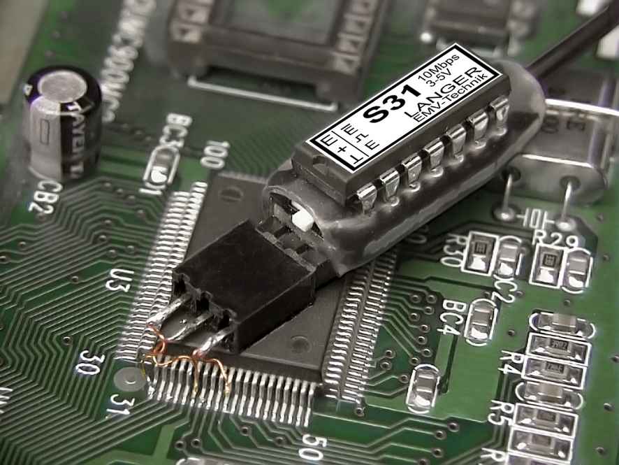 為了評(píng)估電路修改的有效性,特殊設(shè)計(jì)的IC傳感器能和被測(cè)單元EUT內(nèi)部器件一樣,感應(yīng)突發(fā)干擾對(duì)數(shù)字電路邏輯的影響,并把干擾情況通過(guò)光纖傳遞帶SGZ21內(nèi)置計(jì)數(shù)器。