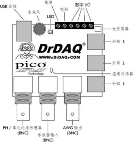 北京海洋興業科技股份有限公司推出的DrDAQ多功能測試模塊,不到1300元人民幣,就可擁有它。無需外接電源,DrDAQ通過USB端口簡單直接插到PC電腦,就可成為數據記錄儀、數字示波器、信號發生器、環境檢測儀表、化學和生物試驗設備——進而更多功能,高達近20種,用途廣泛,不僅僅用于工業,還能作為教學數據記錄儀用(物理、化學、生物和電子等領域),更可作為業余愛好者的通用儀器: