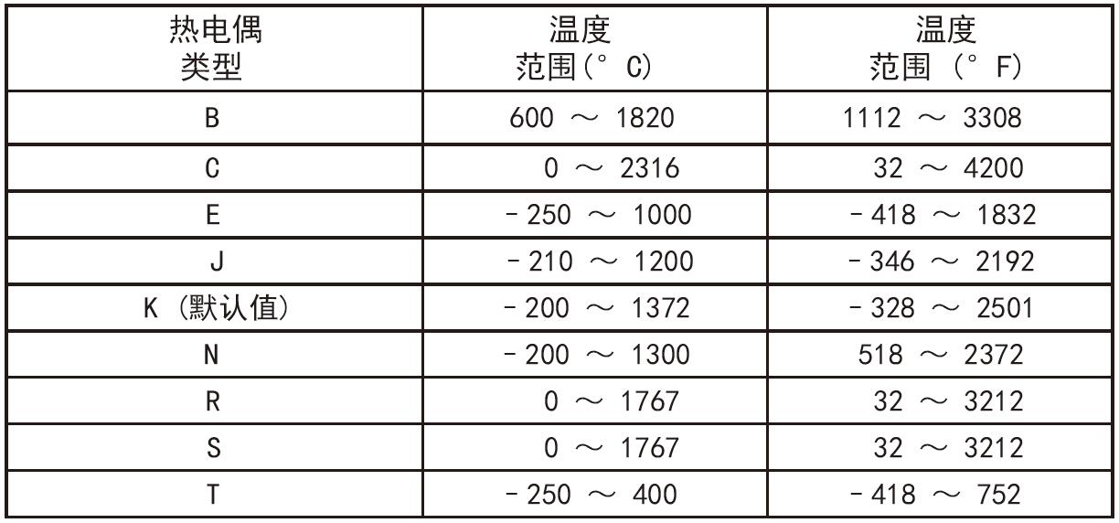 2110數字萬用表(DMM)通過前部面板(標注為“TCINPUT”)的專用熱電偶輸入端對電壓進行測量。熱電偶的主要優勢在于其低成本和高耐久性。不過,其精度不如其他溫度測量傳感器。2110數字萬用表(DMM)支持J、R、S、T、E、N、B、C、K型熱電偶。每種類型的熱電偶具有不同的工作溫度范圍和測量精度。