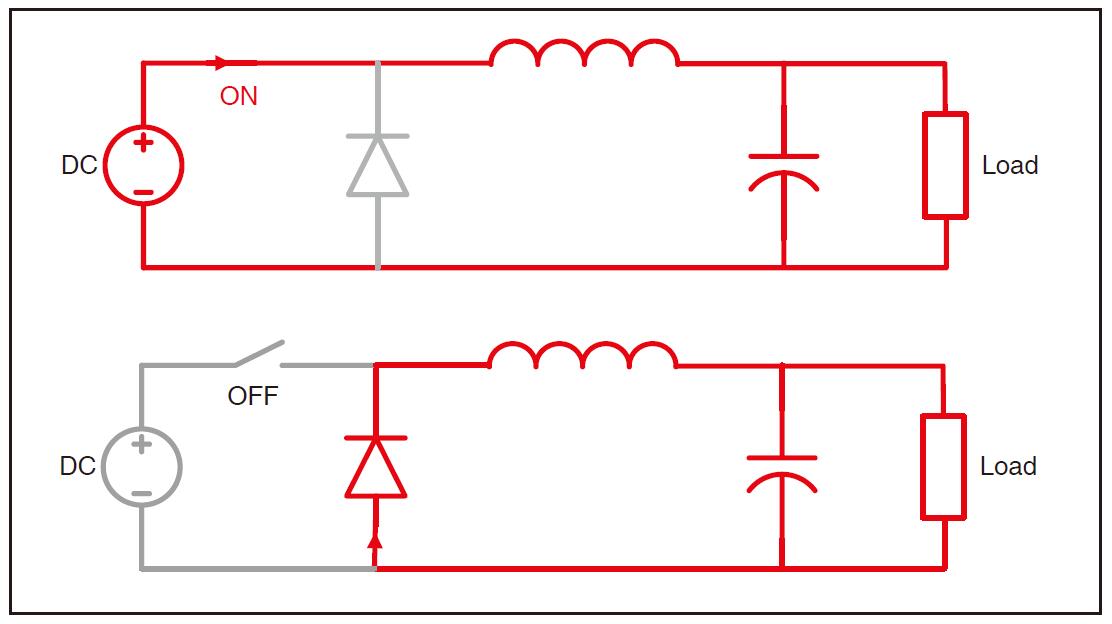 圖1 DC-DC 降壓轉(zhuǎn)換器工作示意圖