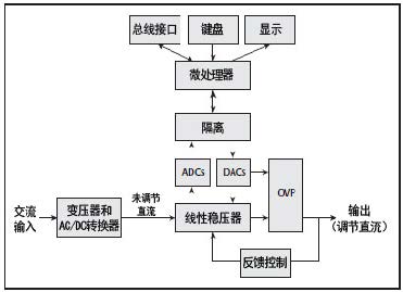 在歷史上,直流電源用戶使用電位計設置輸出電壓或電流。今天,微處理器從用戶接口或遠端接口接收輸入。數(shù)模轉(zhuǎn)換器(DAC)接收數(shù)字設置,將其轉(zhuǎn)換為模擬值并用作模擬調(diào)節(jié)器的參考。設置分辨率和準確度的值由轉(zhuǎn)換質(zhì)量和調(diào)節(jié)過程決定。