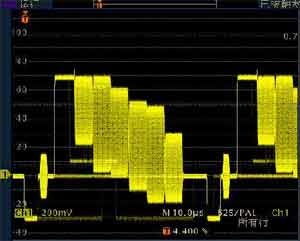 圖2-1 在模擬示波器上看到的視頻信號 圖2-2 在數字示波器上看到的視頻信號