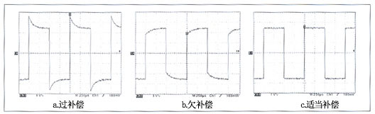 探頭的輸入電容決定了探頭的高頻特性和在額定衰減比下輸入電容的補償范圍,調節輸入電容使探頭具有平滑下降的頻率特性和規定的衰減比,由于不同的儀器輸入電容有一定的差異,因此探頭的輸入電容具有一定的調節范圍。詳見圖2探頭補償問題(C1與R2C2/R1的關系)。