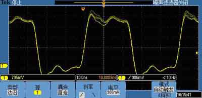 6、打開余暉的功能,并且調高波形亮度,可以觀測到是否有異常信號發(fā)生
