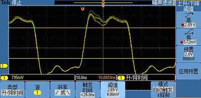 3、將觸發(fā)閾值高低電平調整到適合的位置,最好低值在10%-20%左右,高值在80%-90%附近,來表示升降時間觸發(fā)的閾值范圍