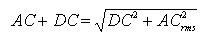 首先,要清楚的是直流信號與交流信號的疊加信號并不等同于交流信號的真有效值與直流信號大小簡單相加。以直流信號u1(t)=1(v ),交流信號u2 (t)=sint為例,二者疊加后信號表示為:u(t)=1+2sint;